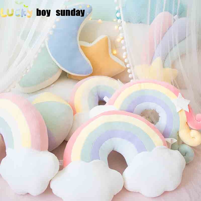 Lucky Boy Sunday Colorful Moon Rainbow Star Cloud Conch Plush Pillow Kids Plush Toys Soft Sofa Cushion Baby Sleeping Pillow Gift